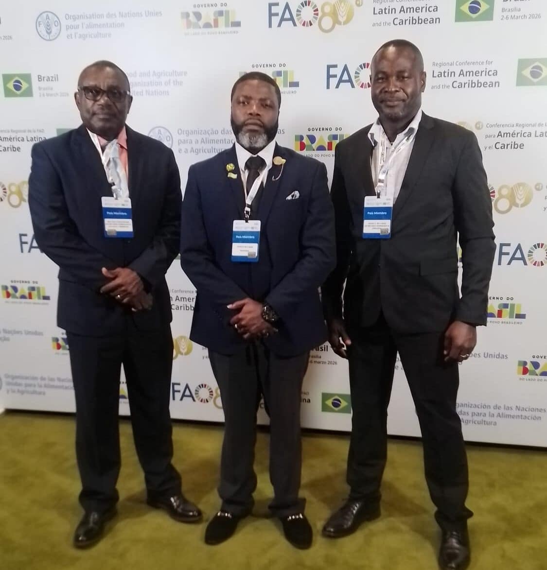 Permanent Secretary Walter Christopher (l) with other delegates at the 39th FAO Conference