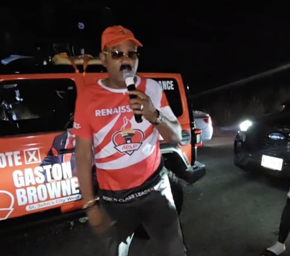 Music, chanting and a sea of red set the tone as Gaston Browne took the stage at a lively campaign event in St. Philip’s South, urging residents to back ABLP candidate Kiz Johnson in the April 30 general election.
