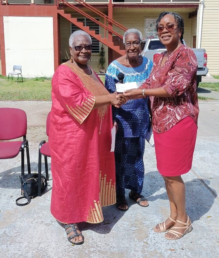 The Antigua Girls’ High School (AGHS) on Wednesday received a generous EC$3,000 donation from a global network of alumnae, represented at the cheque presentation by Dr. Ermina Osoba née Davis and former Headmistress Evelyn Sheppard née Davis.