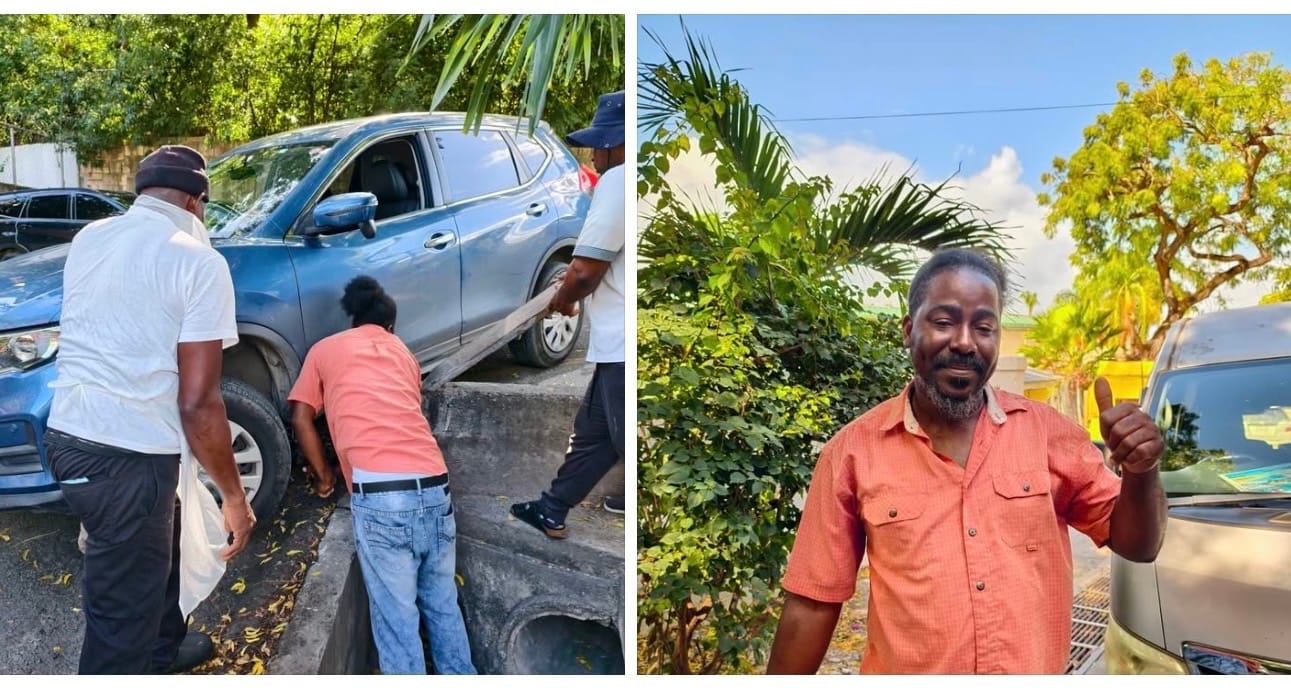 Photos accompanying the message showed several men assisting with a vehicle that appeared to be stuck near a roadside drain.