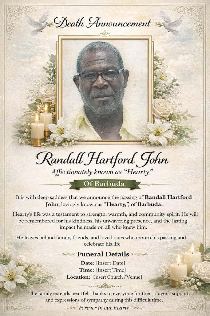 Death Announcement: Randall Hartford John, affectionately known as “Hearty” of Barbuda