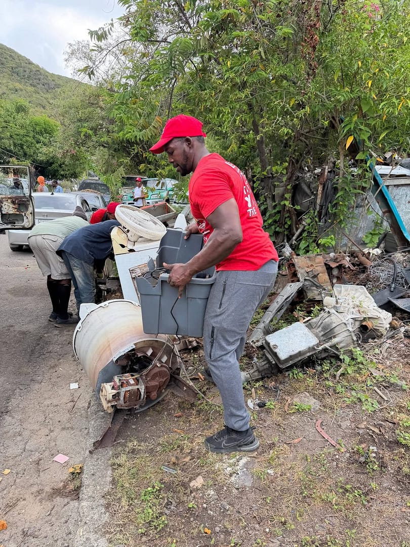 Senator Dwayne George led a fifth community cleanup campaign in St. Mary’s South, focusing on Urlings Village and Cades Bay as part of ongoing efforts to improve environmental conditions and community upkeep.