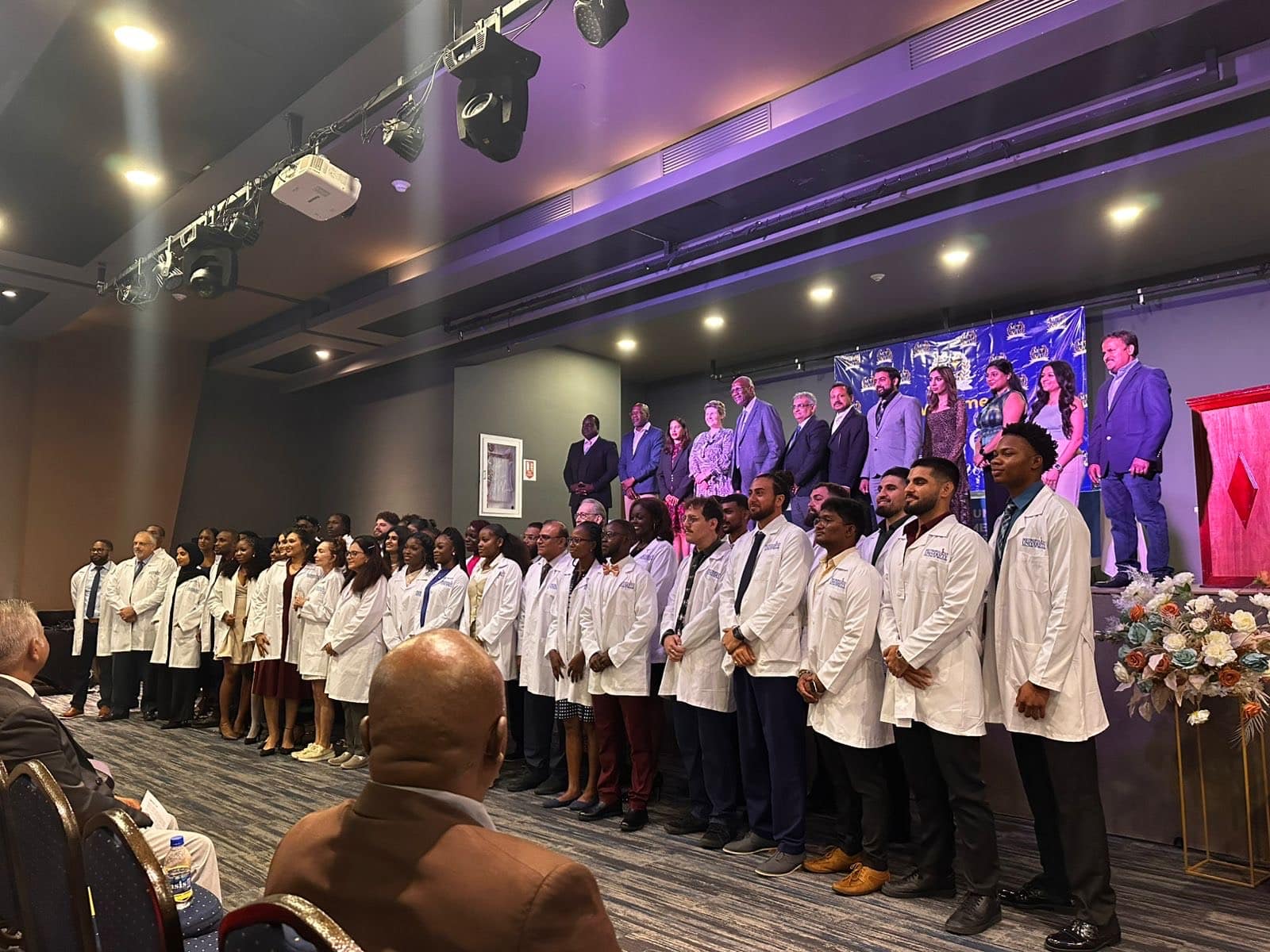 The event was attended by the Governor General, His Excellency Sir Rodney Williams, the Minister of Education, Sports & Creative Industries, the Honorable Daryll Matthew, the Honorary Indian Counsel to Antigua, Mr. Vijay Tewani, representatives from various government ministries and sectors, prominent businesses, physicians and well-wishers. The university shareholders, directors, administrators, faculty, staff, family and friends all proudly gather to celebrate and support the graduates and white coat recipients on this memorable milestone.