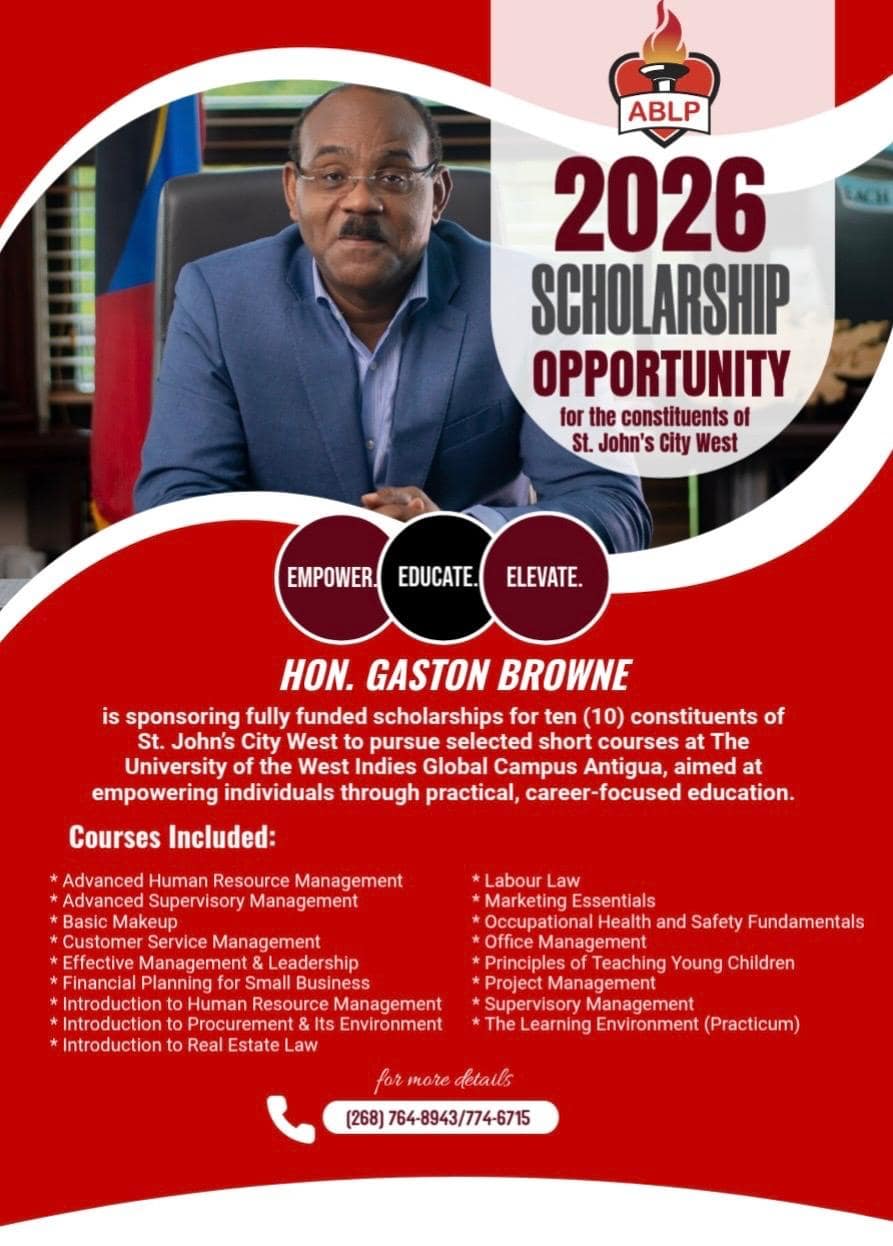 Prime Minister Gaston Browne is sponsoring 10 fully funded scholarships for residents of St. John’s City West to pursue selected short courses at the University of the West Indies Global Campus in 2026.