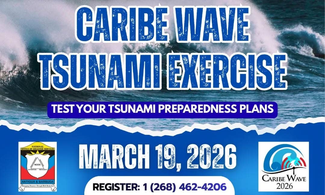 The annual “Caribe Wave Tsunami Exercise” will be held in Antigua and Barbuda on Thursday 19th March facilitated by the National Office of Disaster Services (NODS). This exercise will test tsunami preparedness plans throughout the island.